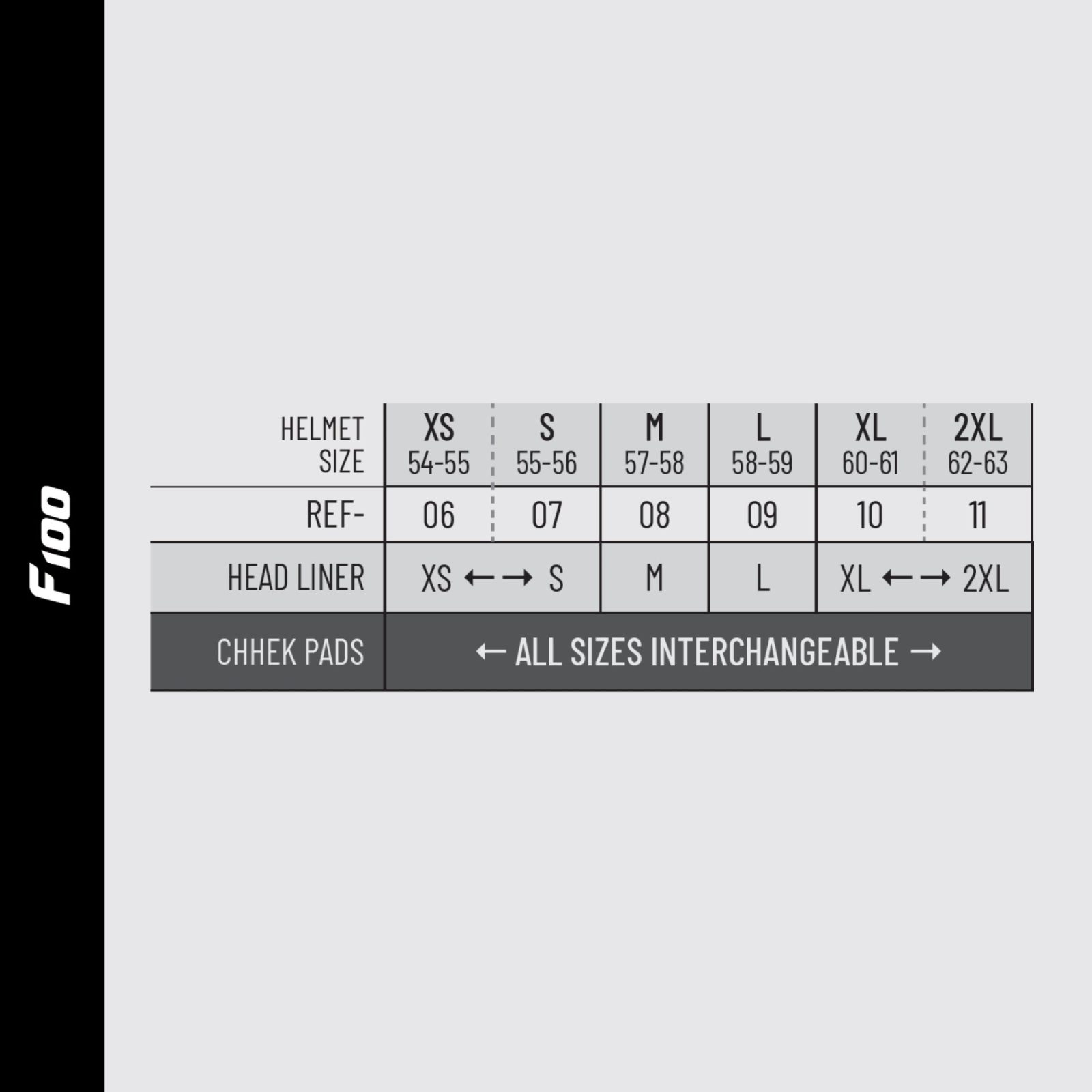 Kask F100 posiada 2 różne rozmiary wymiennych szyb: