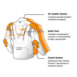 Kurtka motocyklowa tekstylna Ozone Tour III z meshową podszewką i wodoodporną membraną Reissa, sprawdzi się w każdą pogodę. Podpinka ThermoLite i 8 kanałów wentylacyjnych gwarantują komfort termiczny. Ozone Tour III wyposażono w certyfikowane ochraniacze łokci i barków oraz elementy odblaskowe.