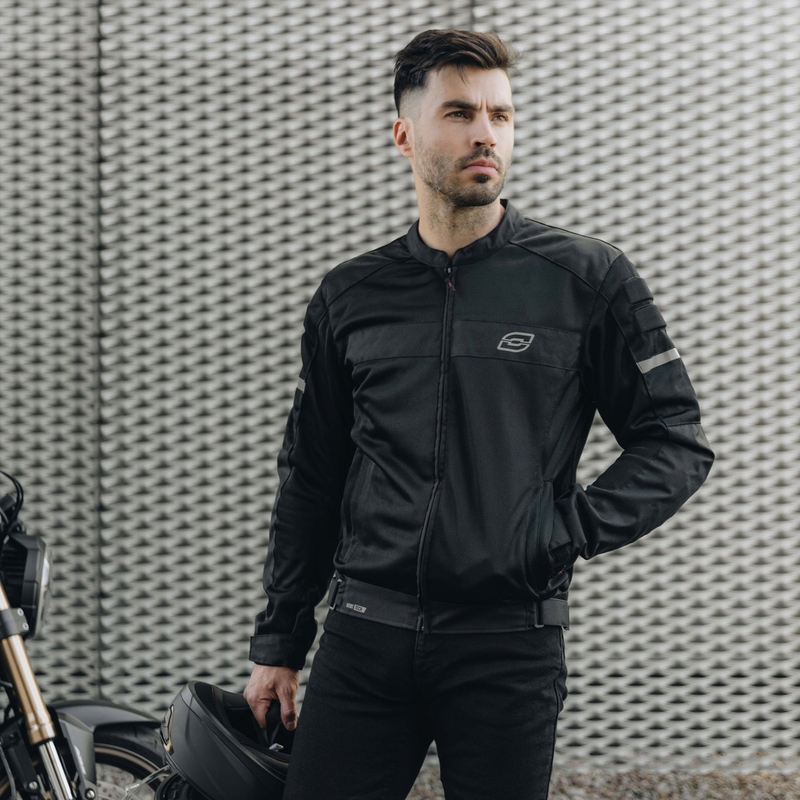 Kurtkę motocyklową DART zaprojektowano z myślą o wygodzie. Duże panele mesh z przodu, z tyłu oraz na rękawach gwarantują doskonałą cyrkulację powietrza i odprowadzanie wilgoci, dzięki czemu kurtka idealnie sprawdzi się w upalne dni. Na barkach i łokciach ma certyfikowane ochraniacze CE-Level 1. Jest regulowana na biodrach i w rękawach. Dodatkowym plusem kurtki są pojemne kieszenie.