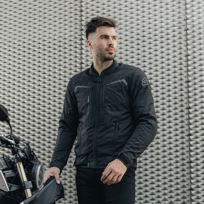 KURTKA TEKSTYLNA OZONE DELTA IV Męska kurtka motocyklowa Delta IV to idealne rozwiązanie na różne warunki pogodowe. Wypinana membrana chroni przed wiatrem i deszczem, podpinka sprawdza się w chłodniejsze dni. Na barkach i łokciach znajdują się protektory. Kurtka jest regulowana w biodrach i rękawach.