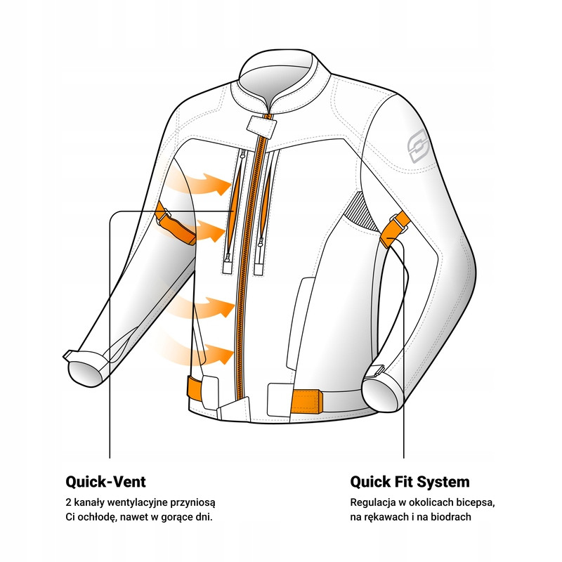 Regulacja obwodu rękawów w bicepsie pozwala optymalnie dopasować je do Twojej sylwetki