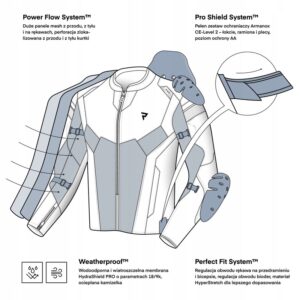 Regulacja na bicepsie, przedramieniu oraz biodrach pozwala na idealne dopasowanie kurtki do sylwetki użytkownika, co zapewnia pełen komfort.