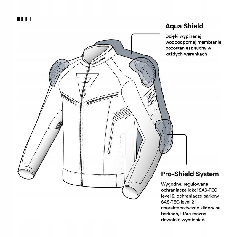 KURTKA TEKSTYLNA REBELHORN VANDAL Kurtka motocyklowa tekstylna Rebelhorn Vandal wyposażona jest w certyfikowane ochraniacze łokci i barków oraz kieszeń na ochraniacz pleców. Sprawdzi się także na co dzień. Wydajna wentylacja i wodoodporna membrana sprawiają, że kurtka Vandal jest gotowa na zmienne warunki pogodowe.