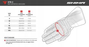 STR-2 to motocyklowe rękawice o sportowo-miejskim charakterze. Wykonane z miękkiej, koziej skóry wyposażone są w konstrukcję z wstępnie zakrzywionymi palcami oraz liczne elastyczne panele na dłoniach i palcach, które pozwalają na dostosowanie się do ruchów dłoni podczas prowadzenia motocykla. Wychodząc naprzeciw wymogom bezpieczeństwa, model STR-2 został wyposażony w główny protektor kostek wzmocniony włóknem węglowym oraz specjalne panele wzmacniające umieszczone w miejscach najbardziej narażonych na urazy. Palce zostały zabezpieczone miękkimi ochraniaczami i sliderami z twardej skorupy. Z boku i wewnątrz rękawicy znajduje się dodatkowa wzmocniona warstwa skóry, natomiast wewnętrzna strona dłoni jest dodatkowo wspomagana przez slider dłoni SAP™ i panel piankowy. W celu wyeliminowania najdrobnniejszego ucisku na palce STR-2 został obszyty na palcach zewnętrznymi szwami. Zapięcie V-Lock™ i wyściełane pianką mankiety są tylko dodatkowymi elementami dbającymi o komfort i bezpieczeństwo. Wszystkie te cechy zapewniają wysoki standard ochrony podczas codziennej jazdy i sportowych zmagań.